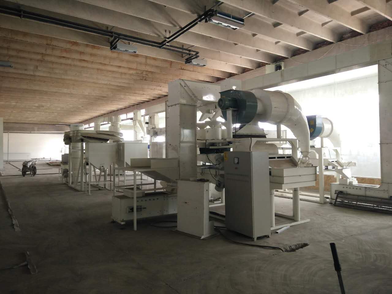 主要設備:振動清理篩、磁選器、比重去石機、剝殼機、脫皮機、破碎機、干燥機、調質鍋等。